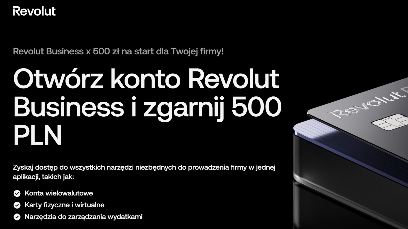 - 500 zł na start dla firmy: otwórz konto Revolut Business i spełnij warunki promocji, aby zgarnąć premię pieniężną na start dla swojej działalności.