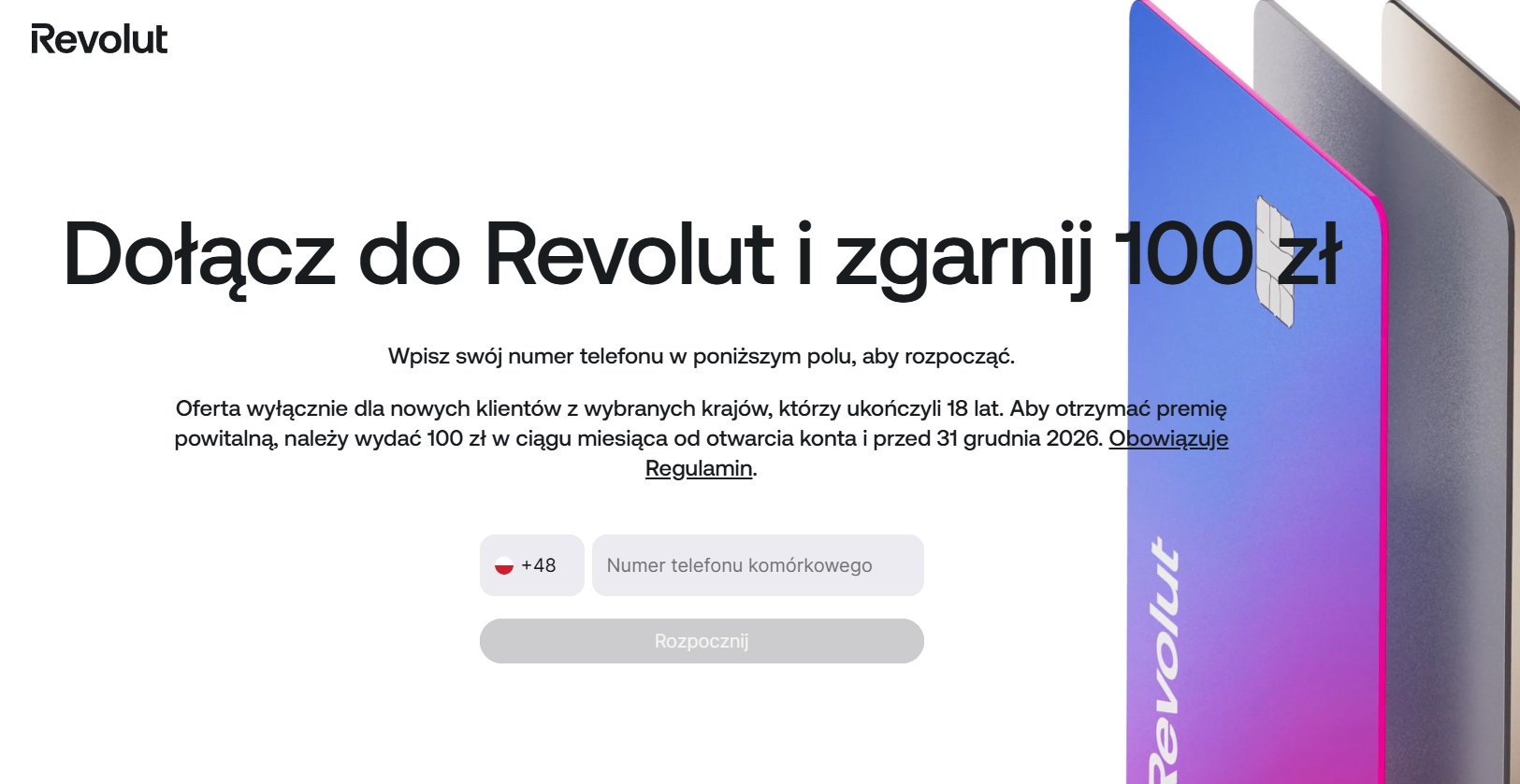 Łącznie: 100 zł premii w gotówce na konto Revolut.